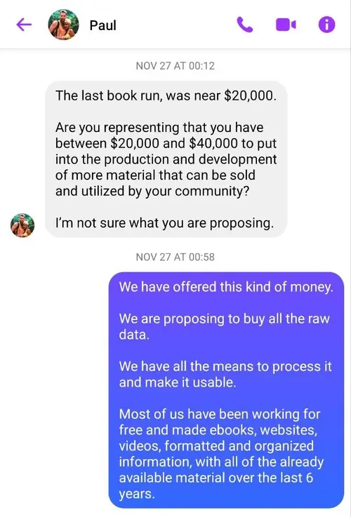 Paul wanted to sell us a new book worth of unpublished data (see this page for our negotiations with Paul), but then stopped replying when our negotiations were getting serious.