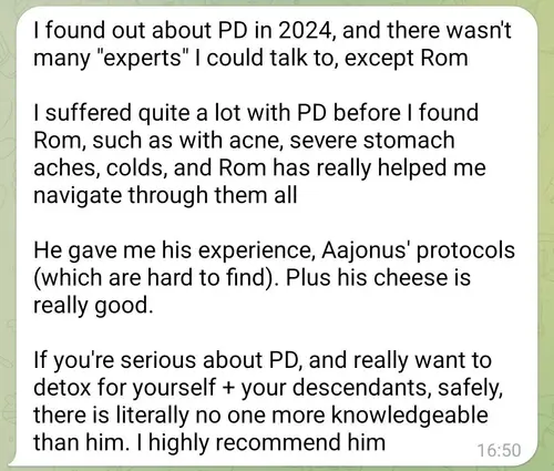 Rom has been extremely important in my development of knowledge on the primal diet and has helped me through times of sickness when I felt clueless on what to consume to heal. He’s like a primal diet AI knowledge machine. You have a problem and he spits out all the solutions faster than chat gpt.