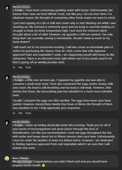 One person had read all of Aajonus' material but struggled with worsening low energy, irritability, despite doing everything by the book. After months, he contacted me. I saw right away what to adjust, and it worked. That was in 2021, see my article about it.