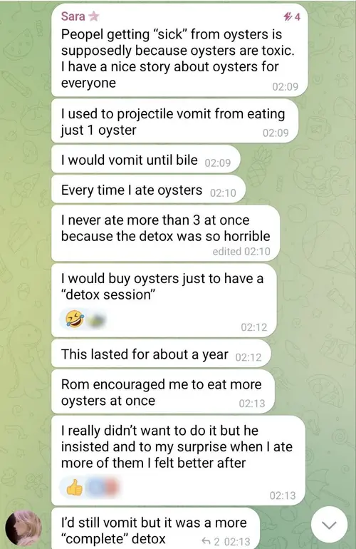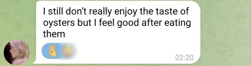 By following my advice, she was soon able to eat oysters without getting reactions, and started feeling good from them instead.