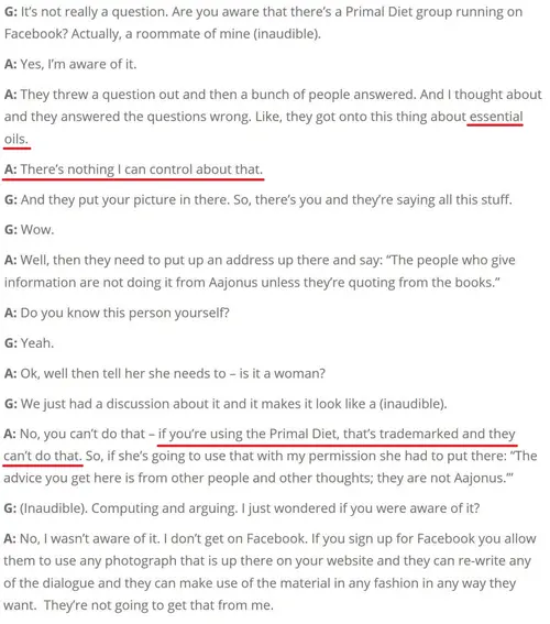 This is already sufficient to revoke the rights of those people to use the Primal Diet trademark and run the official websites. They can create their own diet if they so desire, with its own name, without scamming people who are paying to learn Aajonus' diet; but lying about Aajonus' most vital recommendations is unacceptable.