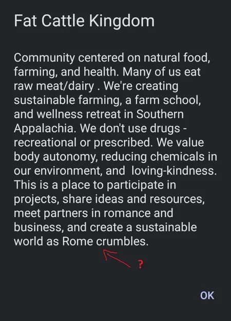 The Signal group people from the Primal Diet website are added to doesn't even have "Primal Diet" in its name, it is called "Fat Cattle Kingdom".