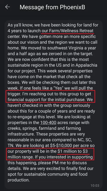Phoenix uses it to find investors, he asks people for millions to buy him a farm. So that's a reason for Phoenix to hijack the Primal Diet official structure, without even respecting Aajonus' works and scamming everyone with his anti-Primal Diet advice.