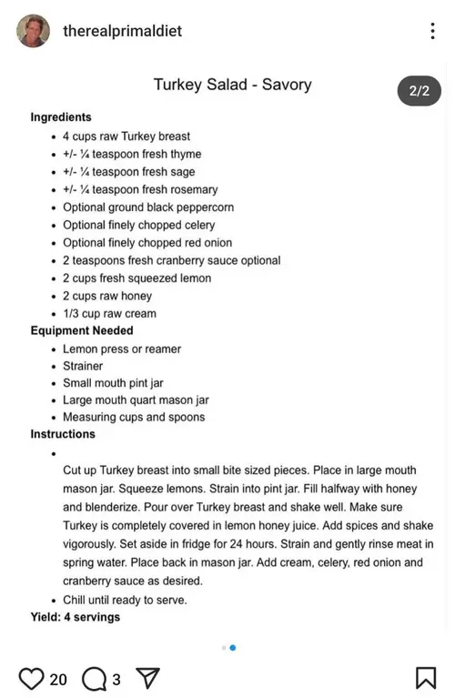 On the same post, there is a turkey recipe that combines raw cream with raw meat.